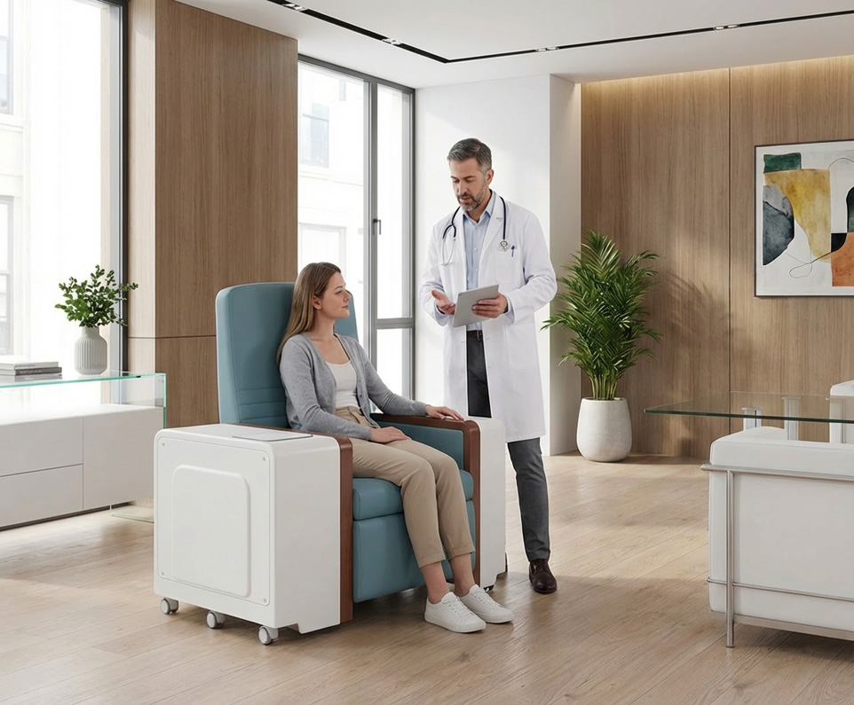 Le NOVAMAG NT-60 est un fauteuil thérapeutique innovant de rééducation pelvienne par champ magnétique pulsé, conçu pour renforcer le plancher pelvien et améliorer le contrôle sphinctérien. Les champs magnétiques génèrent des courants inductifs profonds induisant des contractions musculaires automatiques, permettant une stimulation neuromusculaire ciblée.